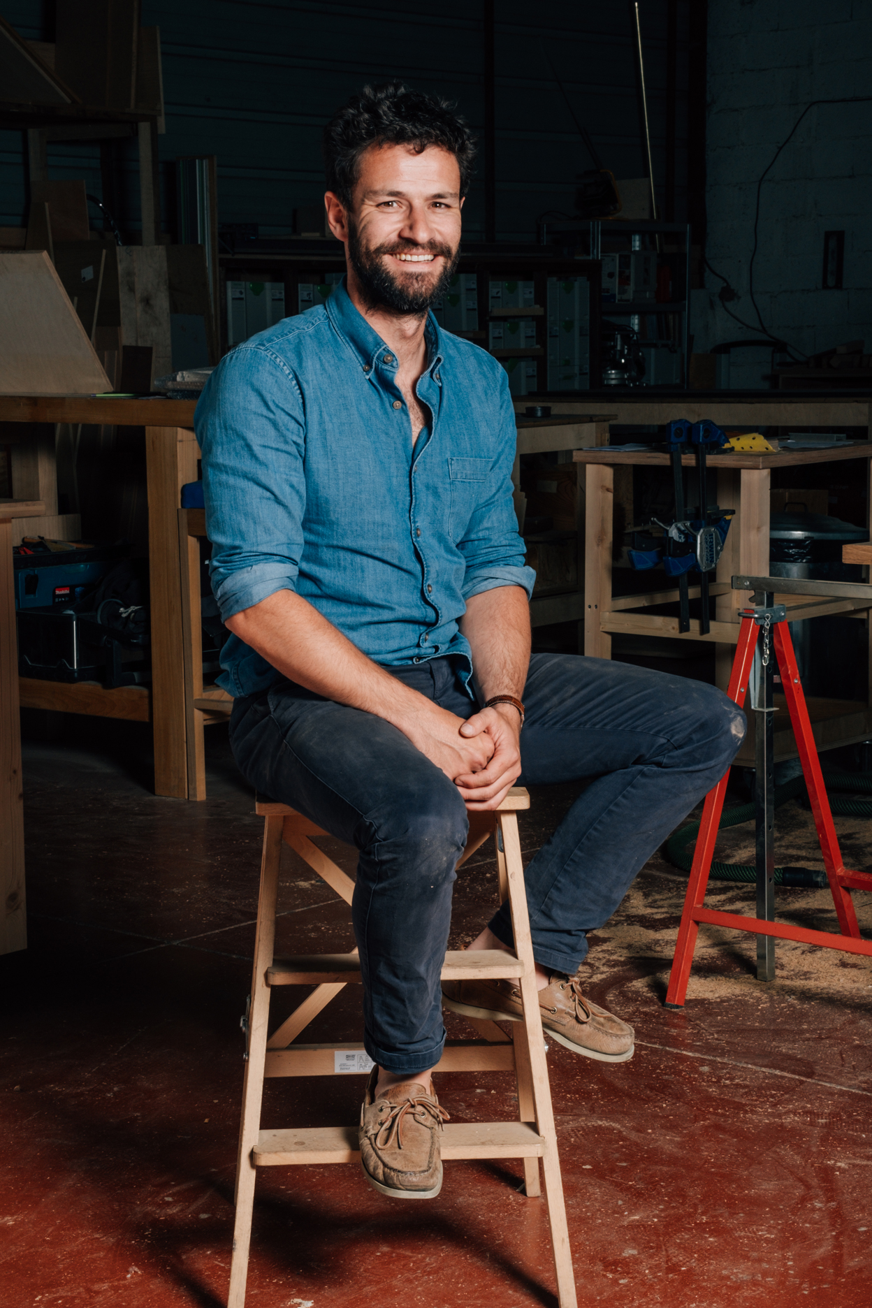 Aujourd’hui, dans son atelier au milieu des vignes bordelaises, il est le chef d’orchestre d’une entreprise spécialisée dans la fabrication de meubles pour les professionnels et particuliers : Mobilier pour restaurants, aménagement de boutiques, ameublement d’espaces de coworking et le conseil en agencement.